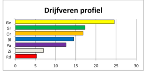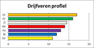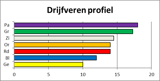 Tenslotte onderscheiden we nog een veelzijdig profiel. Dit is een profiel met een klein verschil tussen de hoogste en de laagste waarde (maximaal 6 punten). Mensen met dit type profiel kunnen zich vaak goed aanpassen en allerlei soorten gedrag laten zien. Doordat ze zich makkelijk aanpassen laten ze hun karakter minder duidelijk zien en worden ze wel eens wat onzichtbaar.